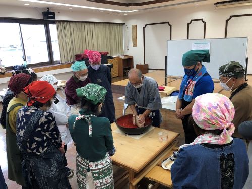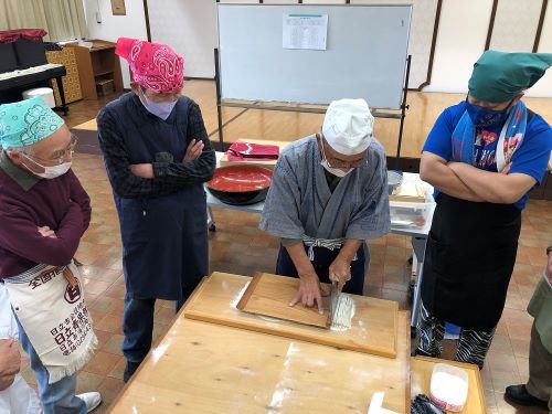 料理教室 ホーム > 社会福祉協議会 > ふれあいなかよし部 > 料理教室 ・料理教室 料理を学ぶと共に、講師を含めた参加者同士の交流を深めています。 そば打ち体験、創作料理など ◎ そば打ち体験(2023.12.5) 照りが出るまでこねて 均等な薄さに延ばして角だして 均等な太さに切りましょう 前のページに戻る